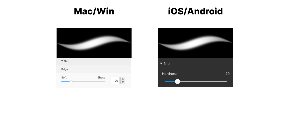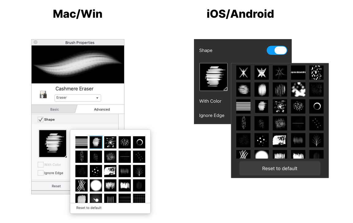 When you apply a Nib Shape, you change the stamp profile, that creates a different look. When you adjust Stamp Spacing, Rotation settings or applying some Randomness, you can achieve a variety of eraser effects.