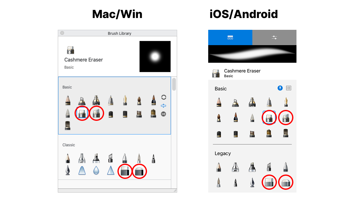 The default brush sets that come with Sketchbook include 8 different erasers to get you started. They are easily customizable by adjusting the settings.